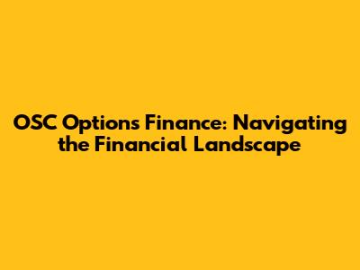 OSC Options Finance: Navigating The Financial Landscape