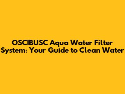 OSCIBUSC Aqua Water Filter System: Your Guide To Clean Water