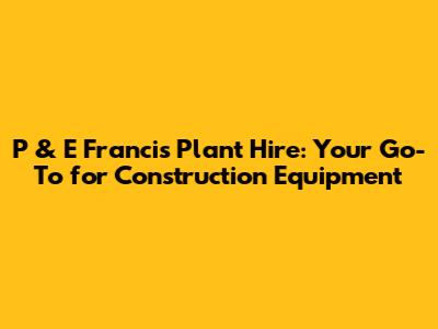 Unveiling P & E Francis Plant Hire: A Quick Overview