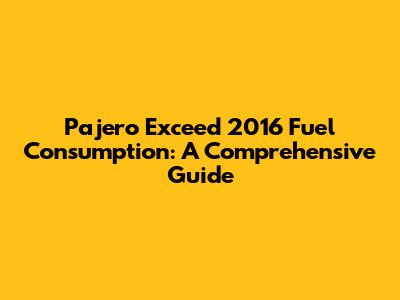 Pajero Exceed 2016 Fuel Consumption: A Comprehensive Guide