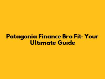 Patagonia Finance Bro Fit: Your Guide