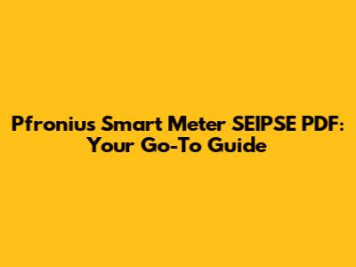 Pfronius Smart Meter SEIPSE PDF: Your Go-To Guide