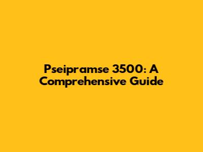 Pseipramse 3500: A Comprehensive Guide