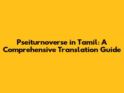 Pseiturnoverse In Tamil: A Comprehensive Translation Guide