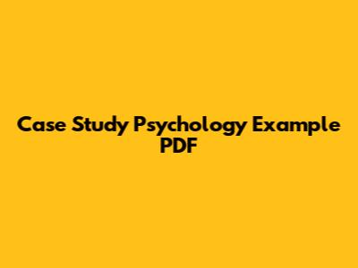 Where to Find Psychology Case Study Examples in PDF Format