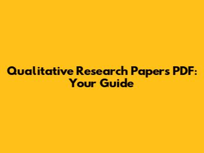 Qualitative Research Papers PDF: Your Guide
