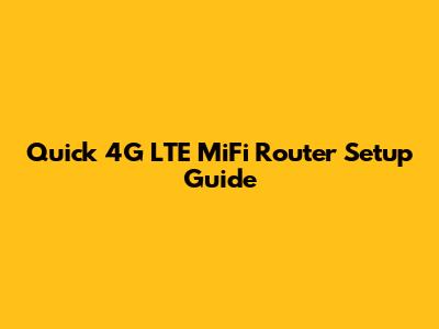 Quick 4G LTE MiFi Router Setup Guide