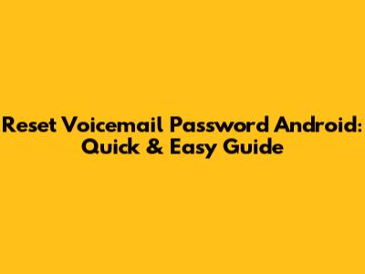 Reset Voicemail Password Android: Quick & Easy Guide