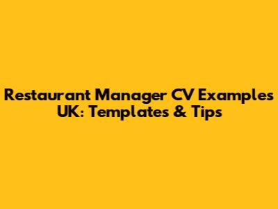 Restaurant Manager CV Examples UK: Templates & Tips
