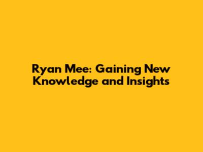 Ryan Mee: Gaining New Knowledge And Insights