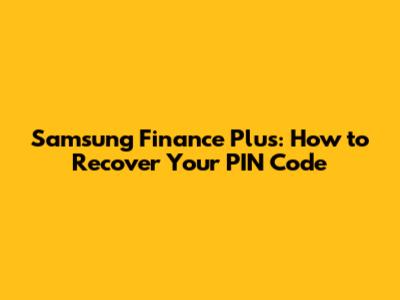 Step-by-Step Guide to Recovering Your Samsung Finance Plus PIN