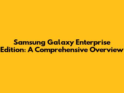 Samsung Galaxy Enterprise Edition: A Comprehensive Overview