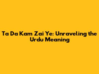 Ta Da Kam Zai Ye: Unraveling The Urdu Meaning