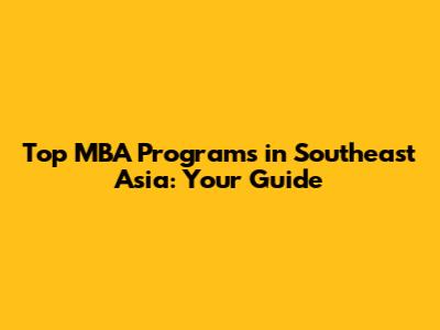 Top MBA Programs in Southeast Asia