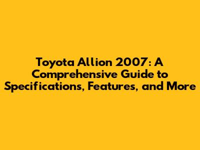Toyota Allion 2007: Specs, Features, And Everything You Need To Know
