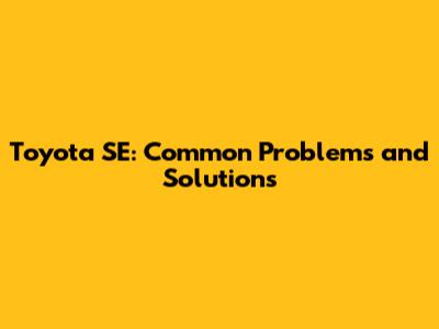 Toyota SE: Common Problems And Solutions
