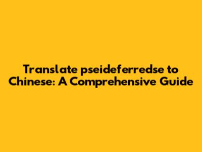 Translate Pseideferredse To Chinese: A Comprehensive Guide