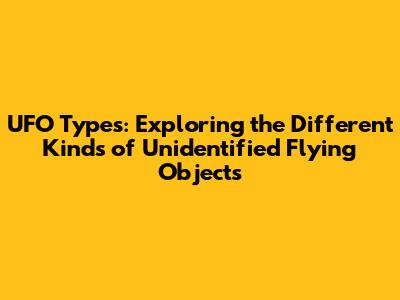 UFO Types: Exploring The Different Kinds Of Unidentified Flying Objects