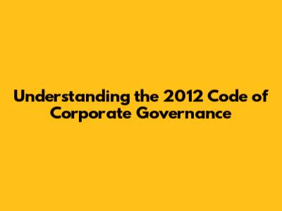Understanding The 2012 Code Of Corporate Governance