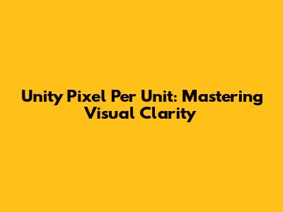 Unity Pixel Per Unit: Mastering Visual Clarity