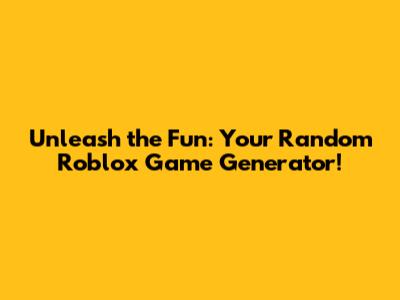 Unleash The Fun: Your Random Roblox Game Generator!