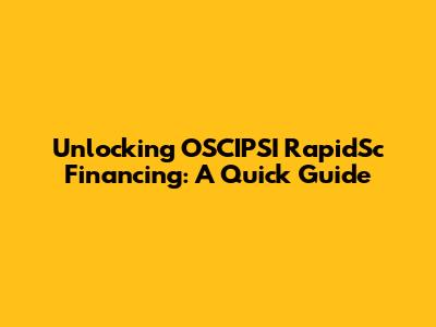 Unlocking OSCIPSI RapidSc Financing: A Quick Guide