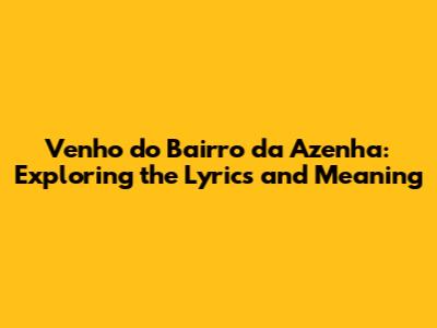 Venho Do Bairro Da Azenha: Exploring The Lyrics And Meaning